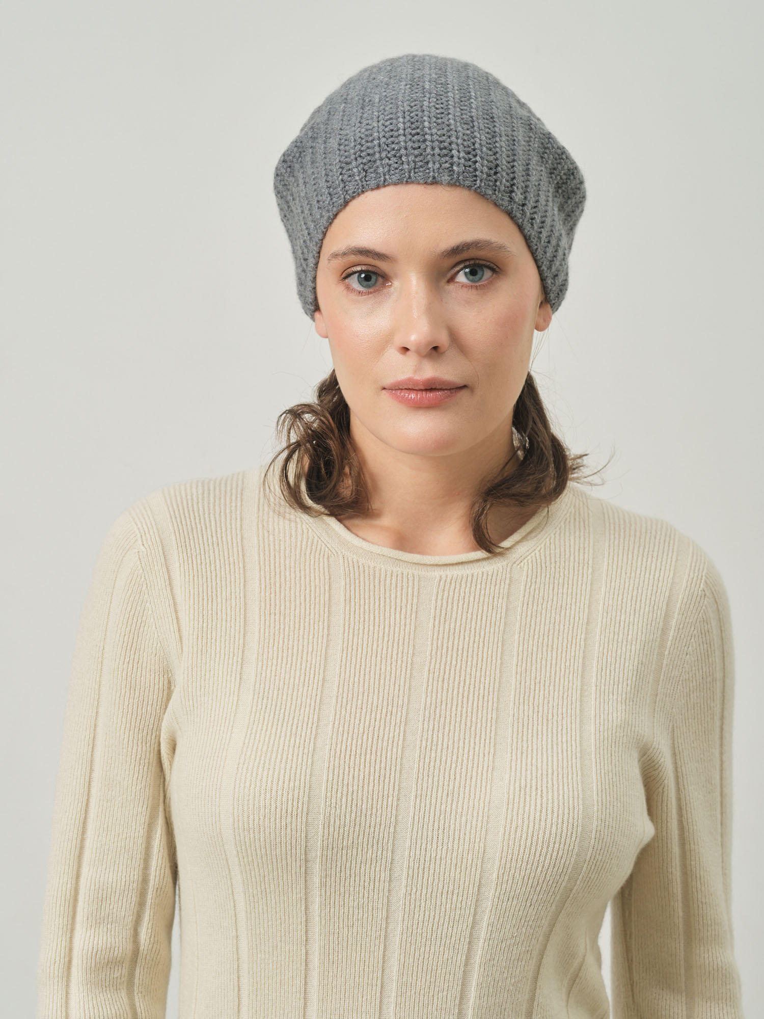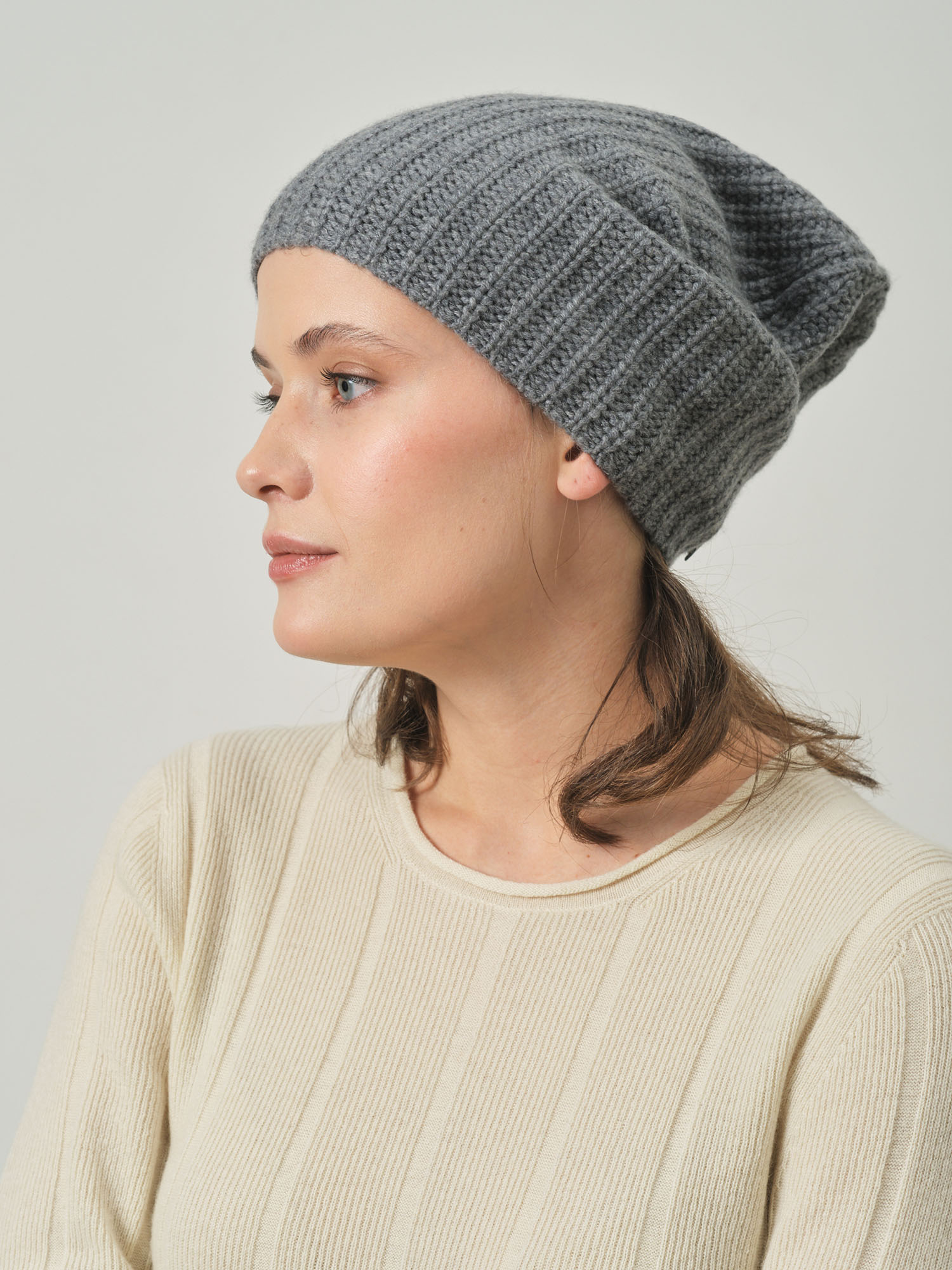 Лаконичная шапка из натурального кашемира выполнена в универсальном графитовом оттенке. Модель с мягкой посадкой и эластичной вязкой комфортно облегает голову, обеспечивая тепло и уют в холодное время года. Сдержанный дизайн делает шапку идеальным аксессуаром для повседневных и городских образов.