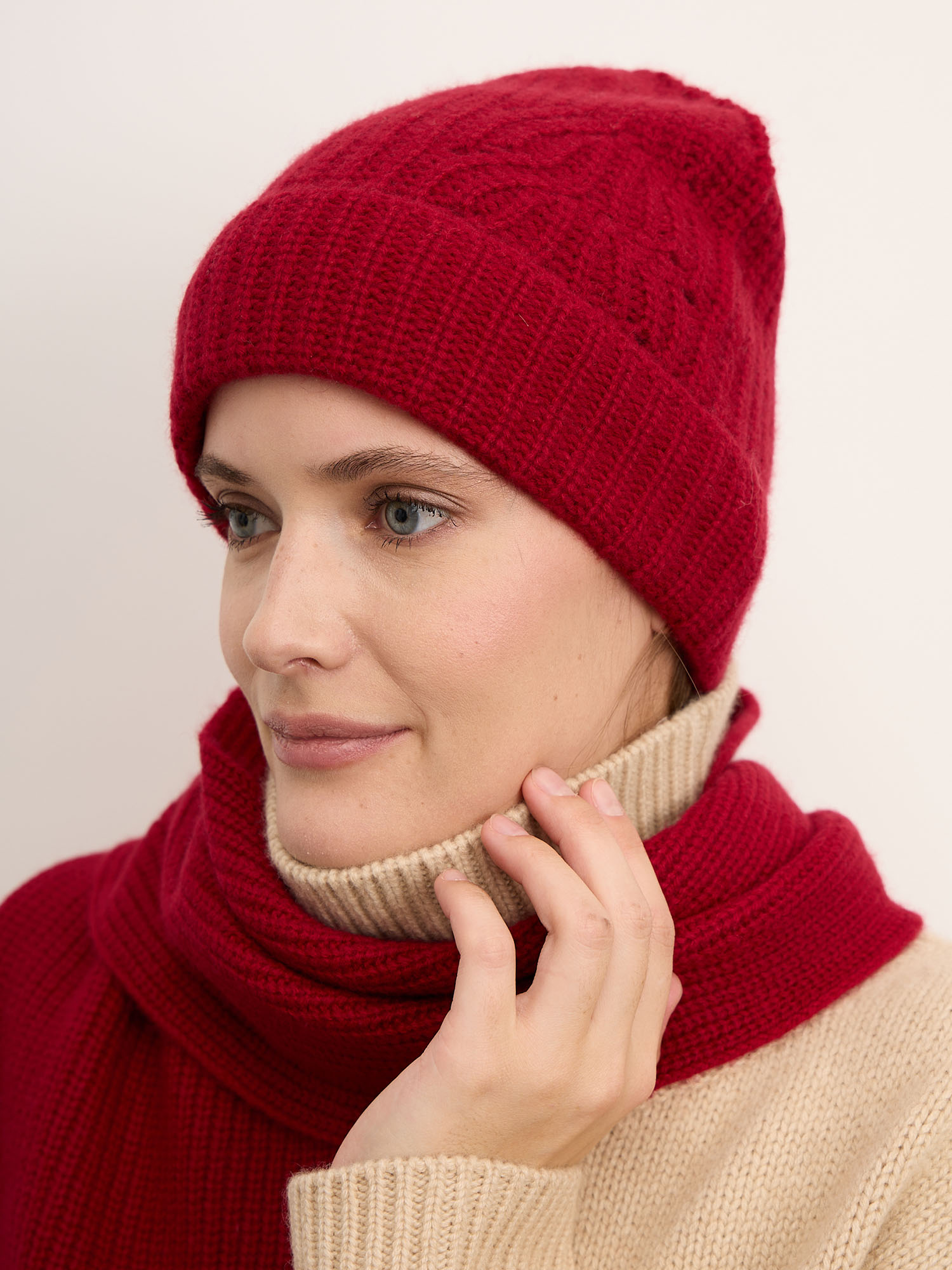 Кашемировая шапка в оттенке бордо — выразительный акцент зимнего гардероба, сочетающий благородство цвета и премиальное качество натурального материала. Глубокий винный оттенок придаёт образу характер и элегантность, а мягкий кашемир окутывает комфортным теплом без ощущения тяжести. Идеальный выбор для тех, кто ценит стиль, уют и долговечность в каждой детали.