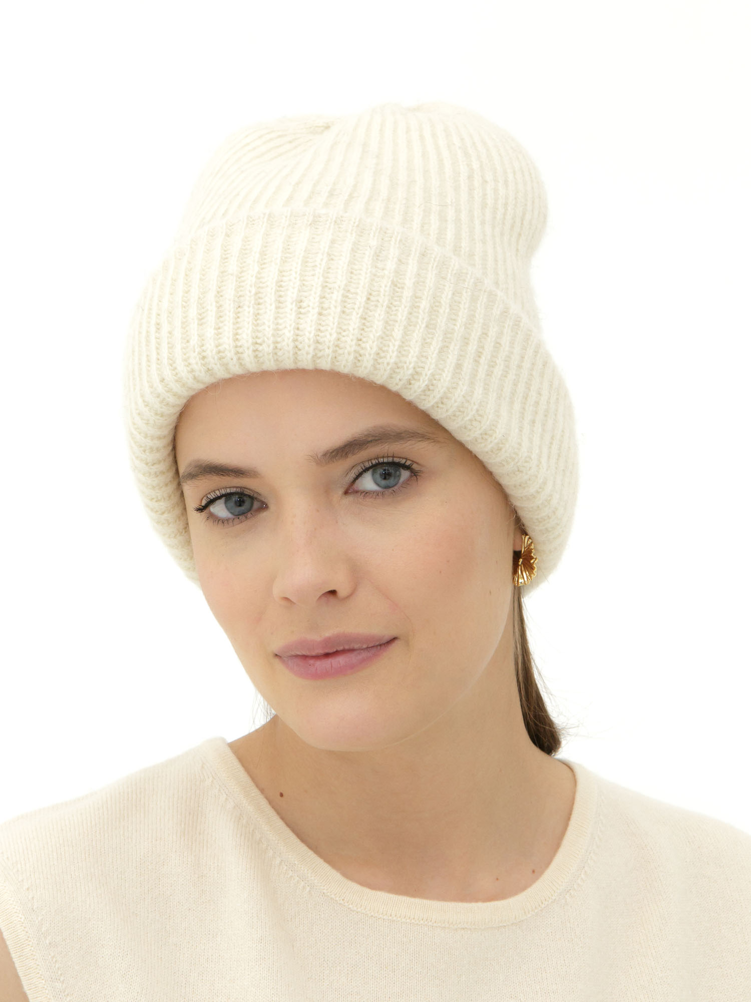 Шапка двойная из шерсти BS кремовая
