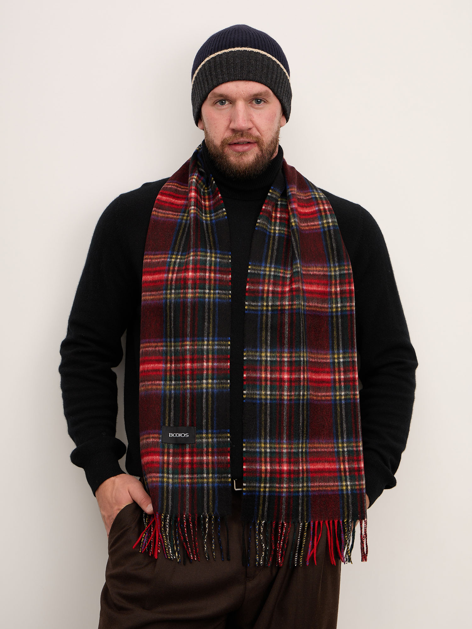 Классическая прямоугольная форма с аккуратной бахромой по краям. Традиционный клетчатый узор в стиле тартан придаёт изделию выразительность и делает его стильным акцентом гардероба.