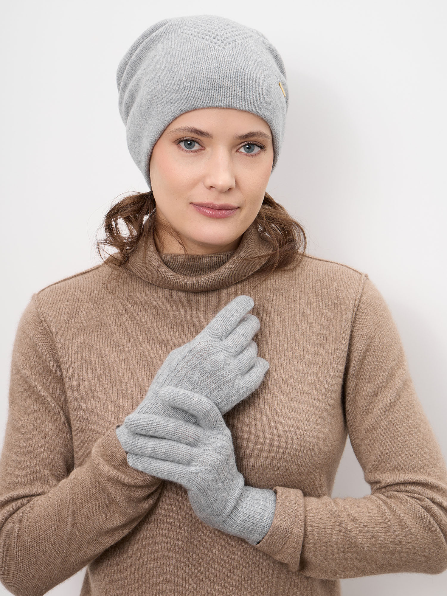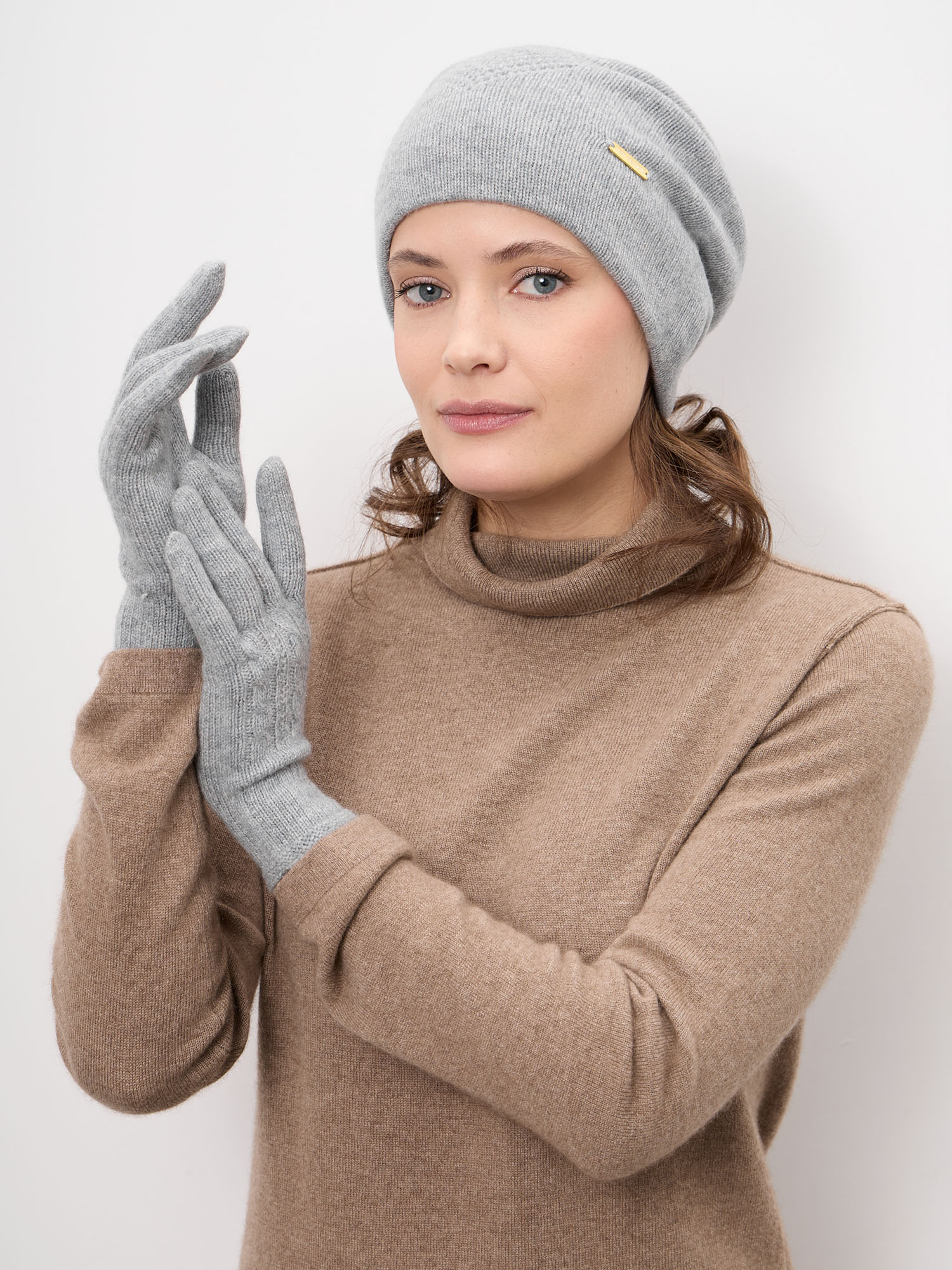 Перчатки выполнены из натурального кашемира — одного из самых ценных и редких материалов. Кашемир отличается исключительной мягкостью, лёгкостью и высокой теплоизоляцией. Он обеспечивает естественную терморегуляцию и подходит даже для чувствительной кожи.