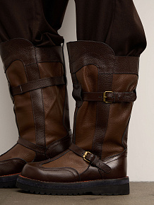 Модель с высоким голенищем и усиленной конструкцией. Лаконичный силуэт дополнен функциональными элементами, придающими обуви брутальный и современный вид.