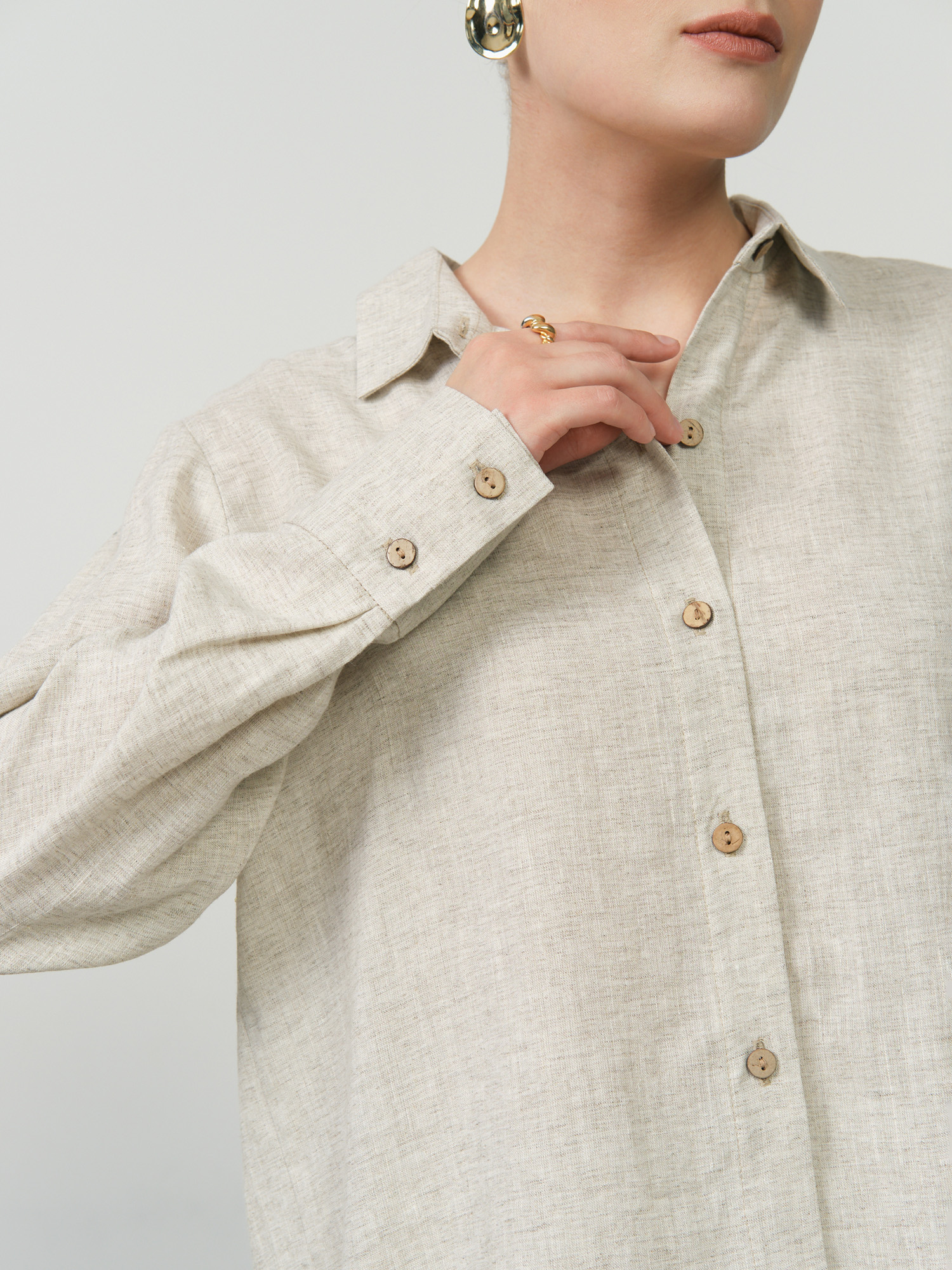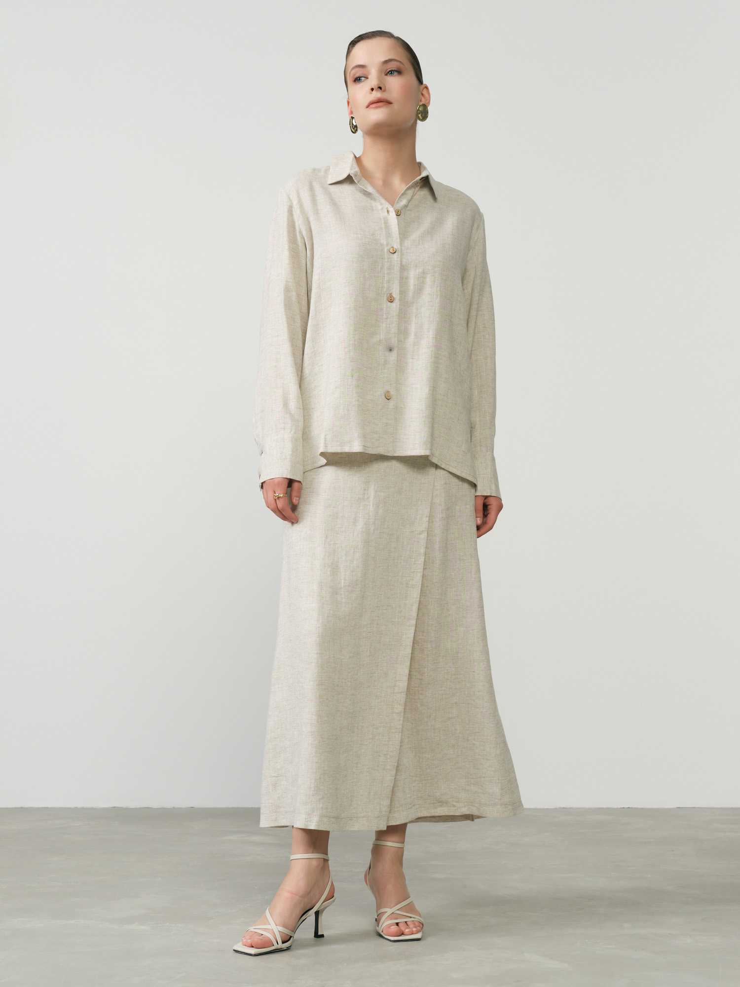 50% лён, 50% вискоза — натуральная дышащая ткань с мягкой текстурой. Объединяет прочность льна и гладкость вискозы, обеспечивая комфорт и лёгкость.